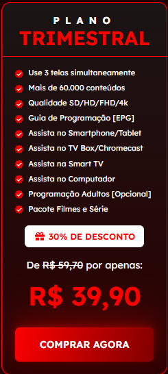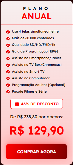 Acesse mais de 2.000 canais de streaming!Mais de 2 mil canais abertos e fechados, netflix, amazon prime, disney+, hbo max, globoplay e muito mais!! Direto da sua TV ou celular em um único sistema!